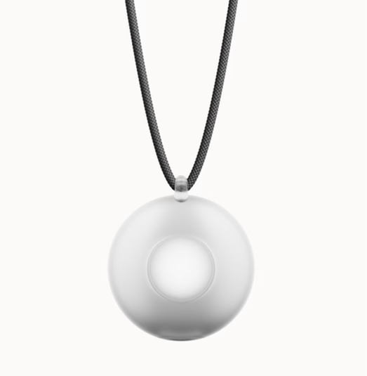 - Worn as a necklace or attached to the side of the head with medical tape